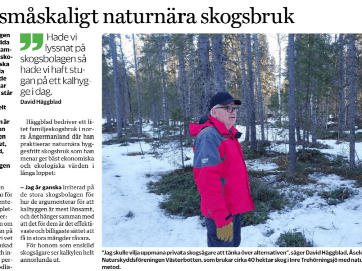 Naturskyddsföreningen Västerbottens ordförande uttalar sig om de nya reglerna som ska "underlätta" för skogsägarna. - vi är positiva till ersättningar till skogsägare men irriterad på skogsbolagen som argumenterar att kalhyggen är mest lönsamt.